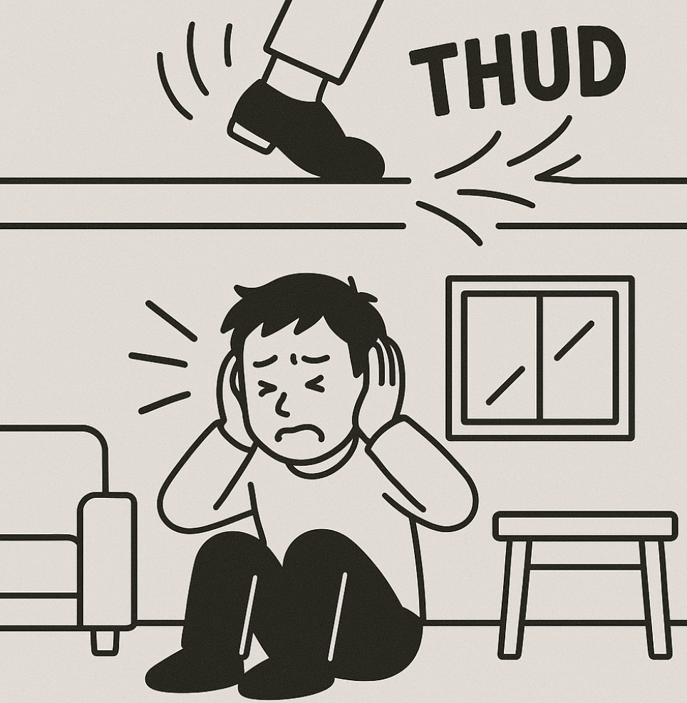 자취방의 대표적인 스트레스 요인 중 하나는 윗집 발소리, 옆집 TV 소리 등입니다. 특히 오래된 건물일수록 방음이 취약합니다.