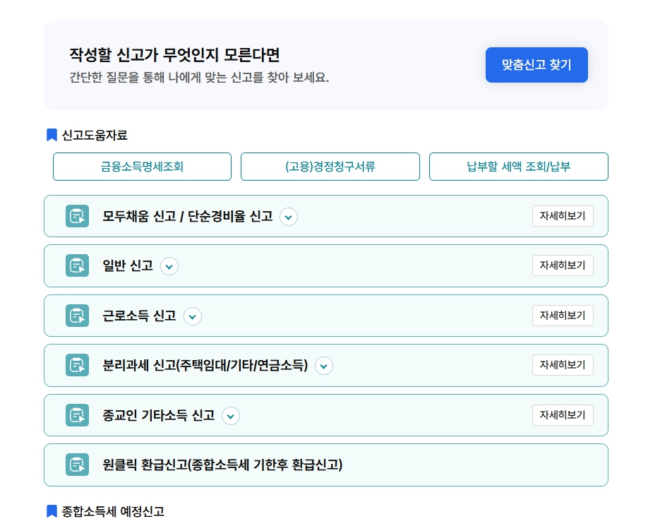 - 홈택스 전년도 이력 활용 → 간편 신고